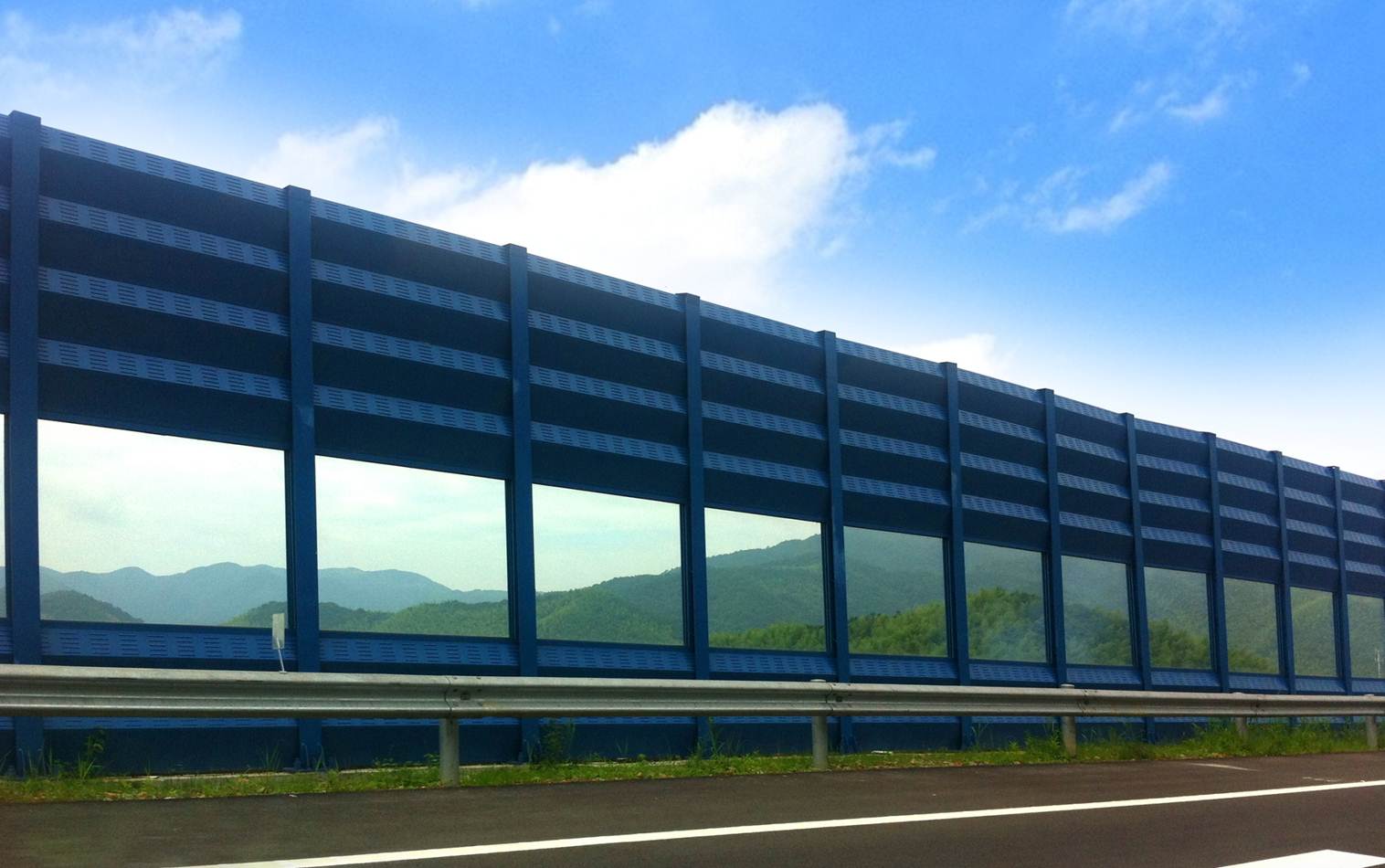 声屏障结构由多块0.5米变截面双空腔吸隔声板与1.5米高5+0.76+5PVB夹胶玻璃组合而成,结构形式多样,外观新颖,吸隔声效果优良,被誉为浙江最美声屏障。