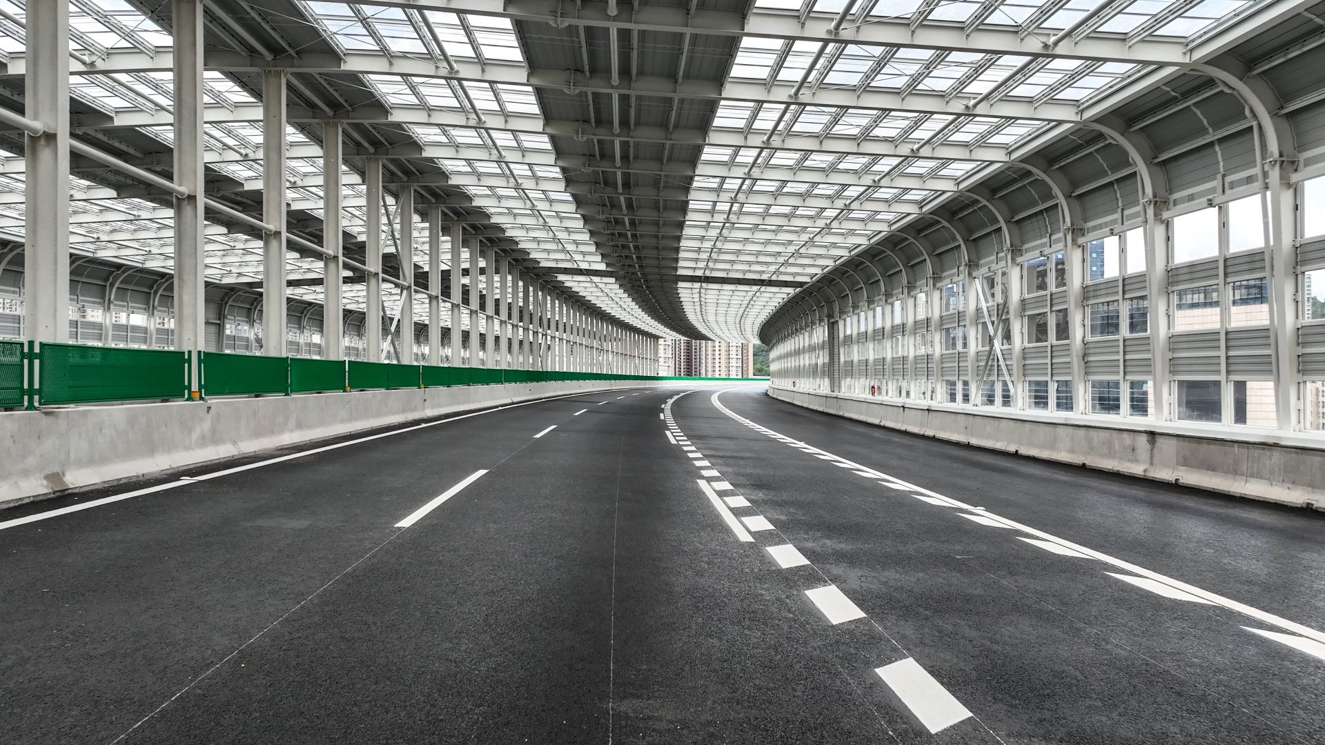 该项目位于中山市,东接深中通道,西接开阳高速公路。标段涵盖直立式声屏障7.7km,全封闭声屏障1.66km,总设计面积约116000㎡。项目全封闭结构形式选用复合式声屏障,侧部声屏障采用插入式安装方式,顶部吸隔音板采用插入式+栓接式结构安装方式。