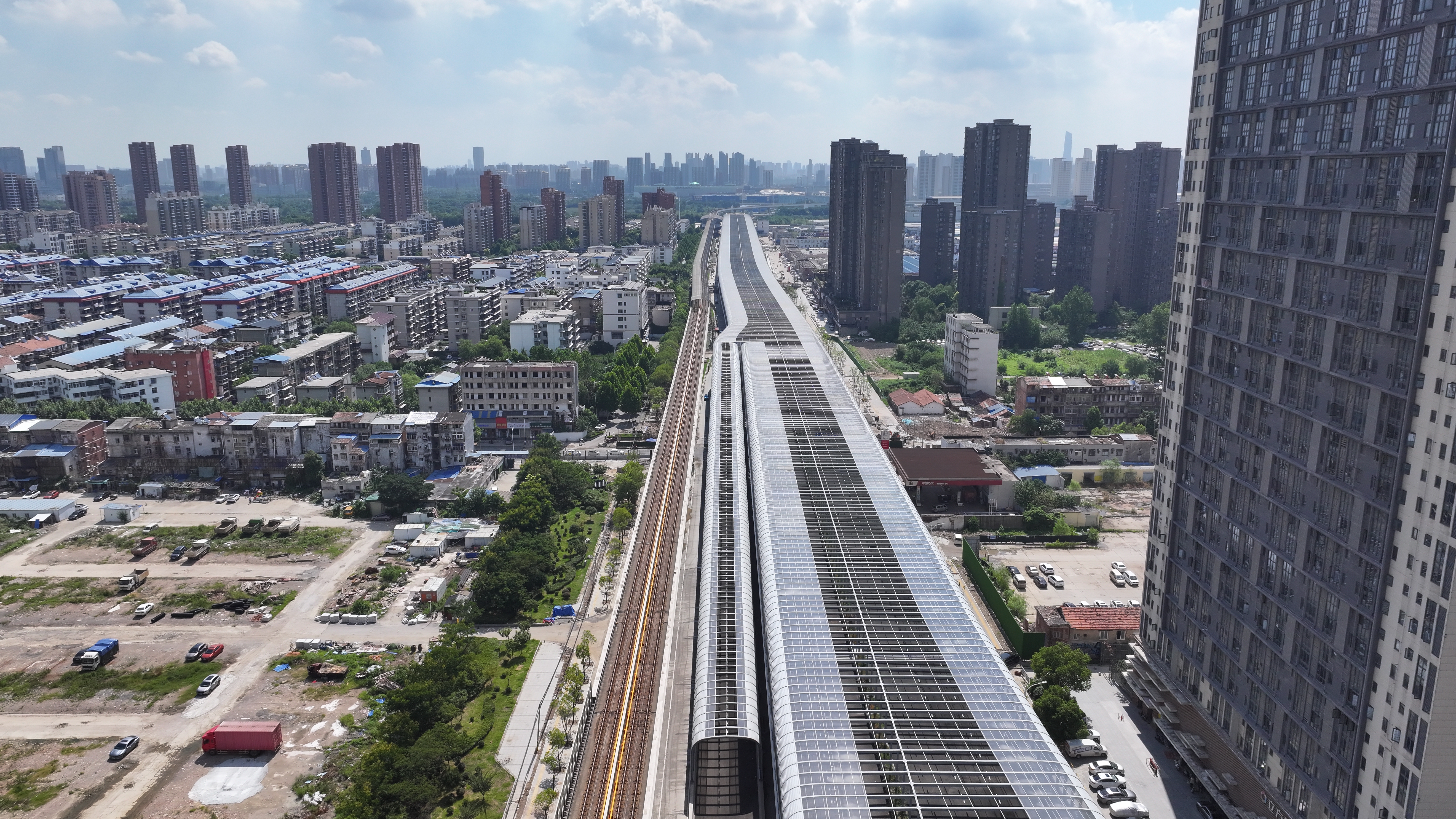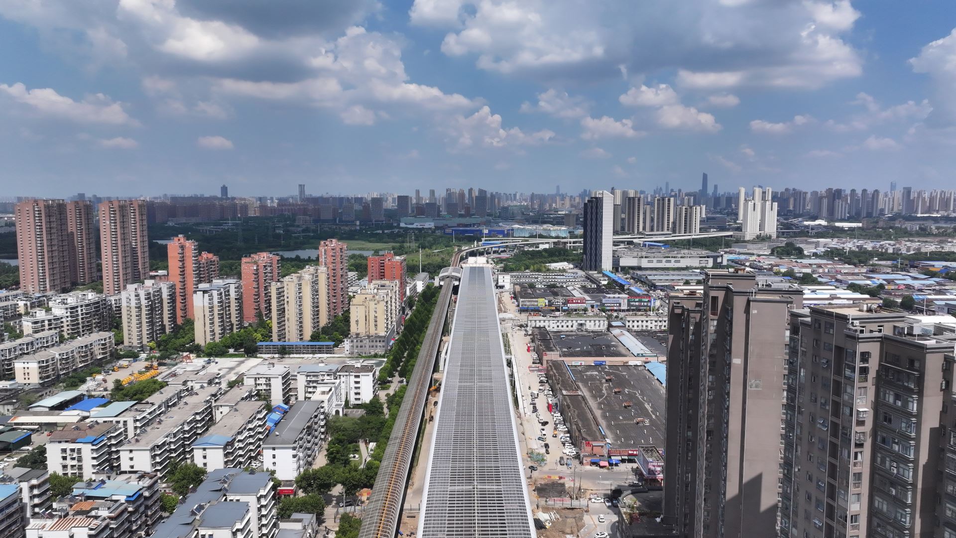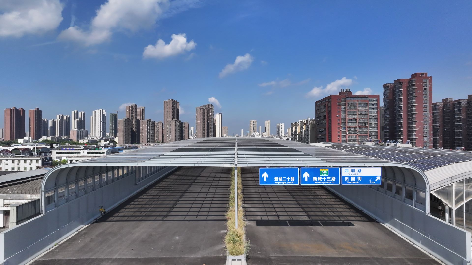 G107武汉市东西湖段(高桥二路至额头湾)全封闭声屏障工程位于湖北省武汉市东西湖区,交付面积约9万㎡,全长3.3km,整体采用全封闭式结构,最大跨度40m,是目前武汉已完工市政全封闭声屏障中单体体量最大的项目。