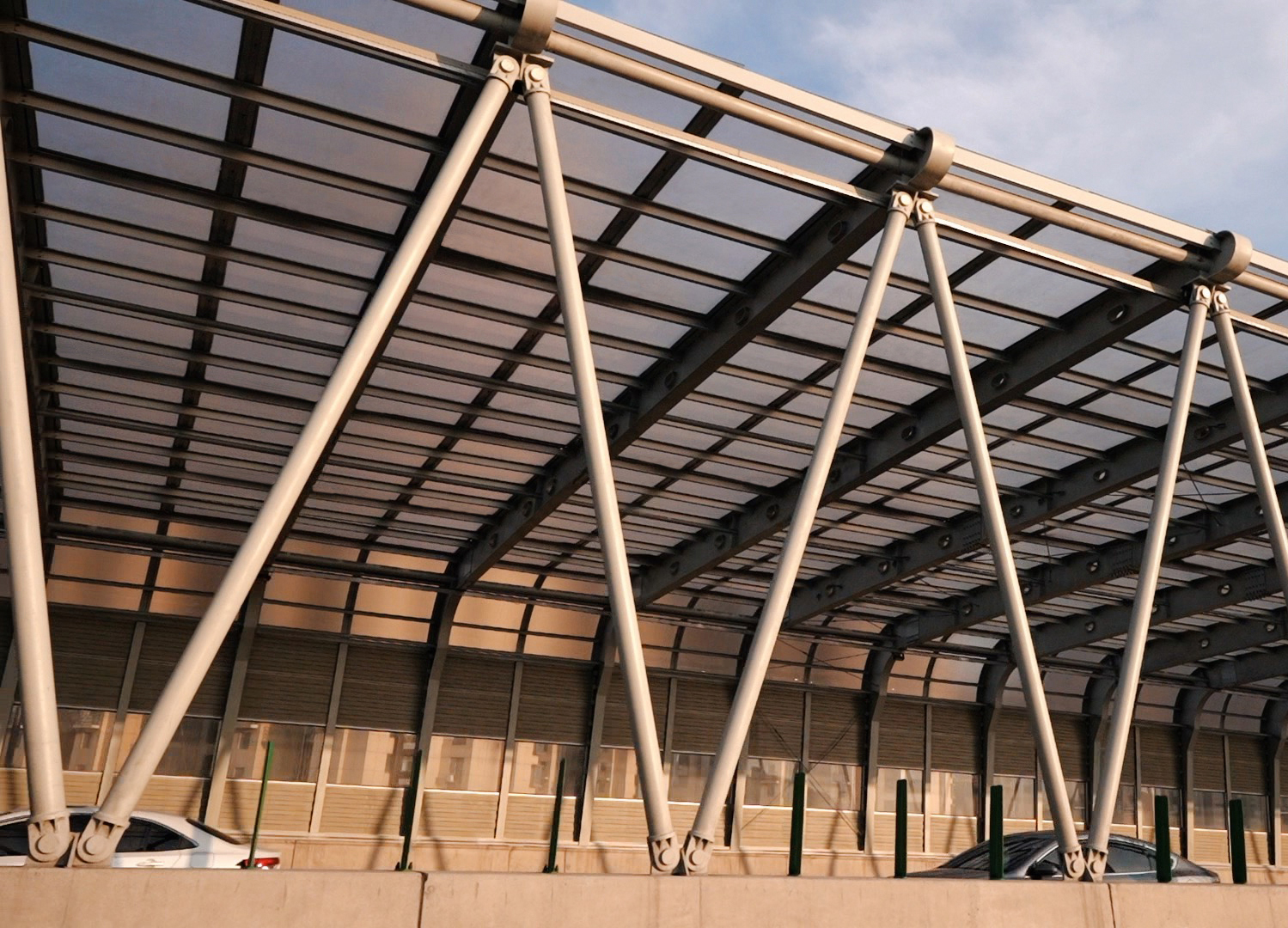 长春世纪大街快速路声屏障工程,位于长春市南关区,交付面积逾3.3万㎡,总长度5.3km。声屏障结构多样,包含4.5km直立式、0.6km半封闭、0.2km全封闭。全封闭结构最大安装跨度达38.4m。渐变段每榀钢架跨度均不相同,安装点位分散,对生产加工及安装精度要求高,交付团队精准落实各项施工环节,优质交付。
